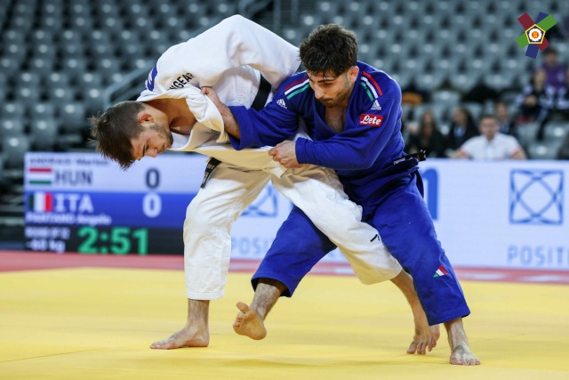 A 60 kilogrammosoknál a Mogyi-Bajai JC U23-as Európa-bajnoki bronzérmese, Andrási Márton az olasz junior és ifjúsági Európa-bajnok Angelo Pantanóval csapott össze az első körben. A huszonkét éves magyar judós a második percben került nehéz helyzetbe, Pantano dobására vazarit kapott, s a karfeszítésből éppen csak sikerült kimenekülni. A bajai judós mindent egy lapra feltéve rohamozott, Pantanót gyors egymásutánban kétszer meg is intették, de végül az olaszé lett az utolsó dobás, véget vetve ezzel Andrási Márton kontinensbajnoki szereplésének.