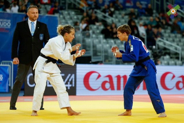 A hölgyeknél a mieink közül Gyertyás Róza nyitotta a sort az 52 kilogrammban, a Koroncói Tutti JK kétszeres U23-as Európa-bajnoknője a portugálok egyszeres U23-as kontinensbajnoka, Maria Siderot ellen lépett tatamira. Huszonkét éves versenyzőnk kapta az első intést a második perc közepén, de ebből a következő fél percben Siderot kettőt is begyűjtött. A portugál többnyire csak védekezett, de küzdelem eljutott a hosszabbításig, amelynek elején Siderot nyomban szabálytalankodott, s ez a leléptetését hozta.